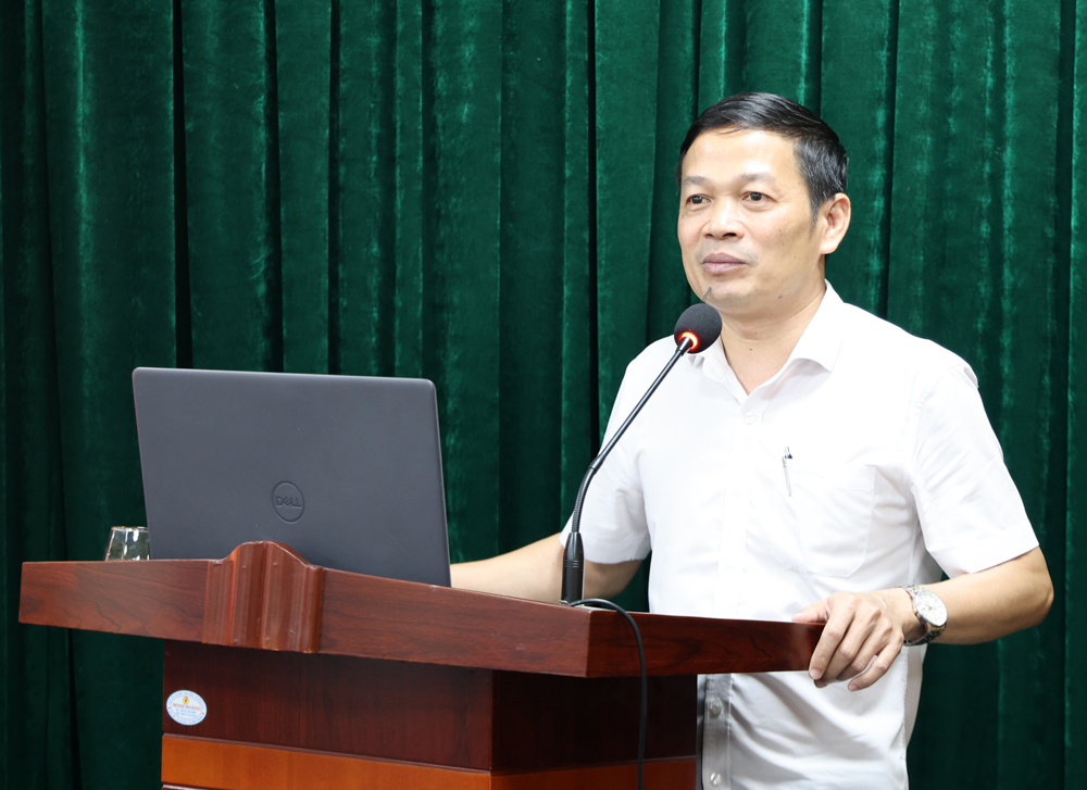 Nhà báo, Tiến sĩ Nguyễn Tri Thức trao đổi tại lớp tập huấn. |