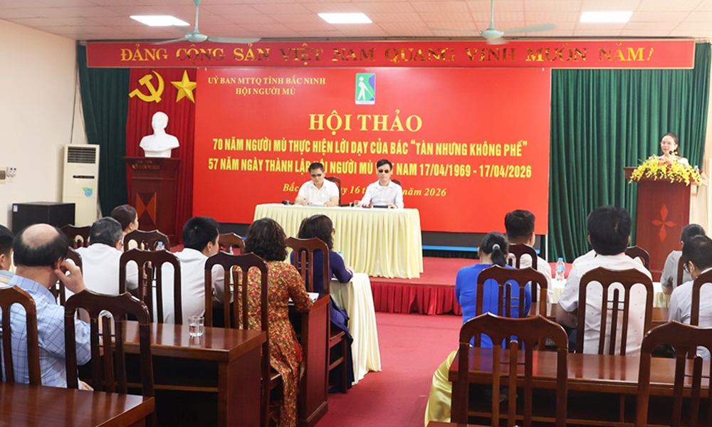 BẮC NINH – Ngày 16/4, tại Trung tâm Tư vấn và Hỗ trợ người lao động tỉnh (phường Bắc Giang), Hội Người mù tỉnh tổ chức Hội thảo 70 năm người mù thực hiện lời dạy của Bác Hồ “Tàn nhưng không phế” và 57 năm Ngày thành lập Hội Người mù Việt Nam (17/4/1969 – 17/4/2026). Dự hội thảo có đồng chí Nguyễn Nhân Chinh, Phó Chủ tịch Ủy ban MTTQ tỉnh.