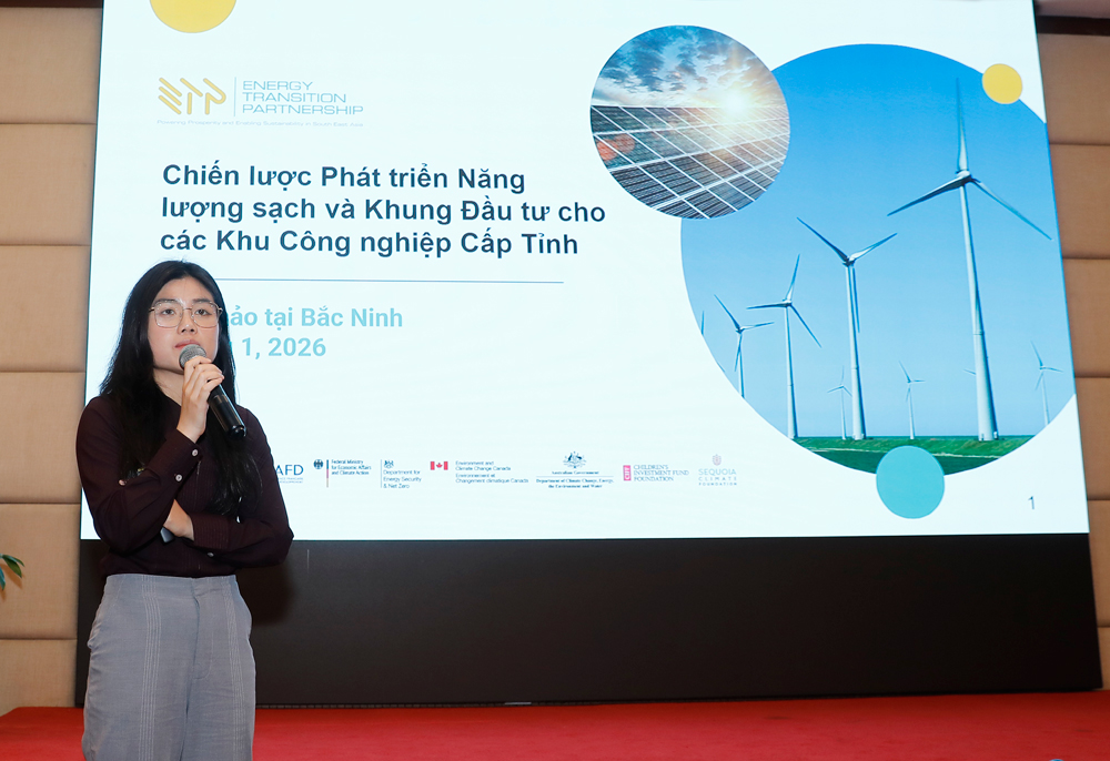 BẮC NINH - Ngày 14/1, tại phường Kinh Bắc, tỉnh Bắc Ninh, Bộ Tài chính phối hợp với Văn phòng Dịch vụ Dự án của Liên Hợp quốc/Đối tác Chuyển dịch năng lượng Đông Nam Á (UNOPS/ETP) tổ chức Hội thảo “Chiến lược phát triển năng lượng sạch và khung đầu tư cho các khu công nghiệp cấp tỉnh”.