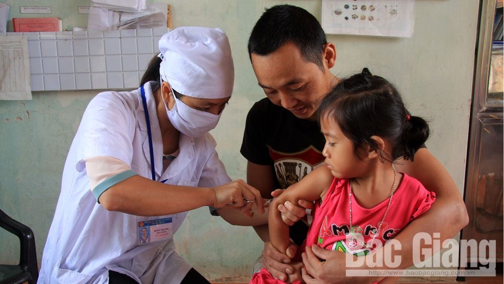 Tiêm vắc xin cho trẻ tại Trạm Y tế xã Chu Điện (Lục Nam). Ảnh: Nguyễn Hào |