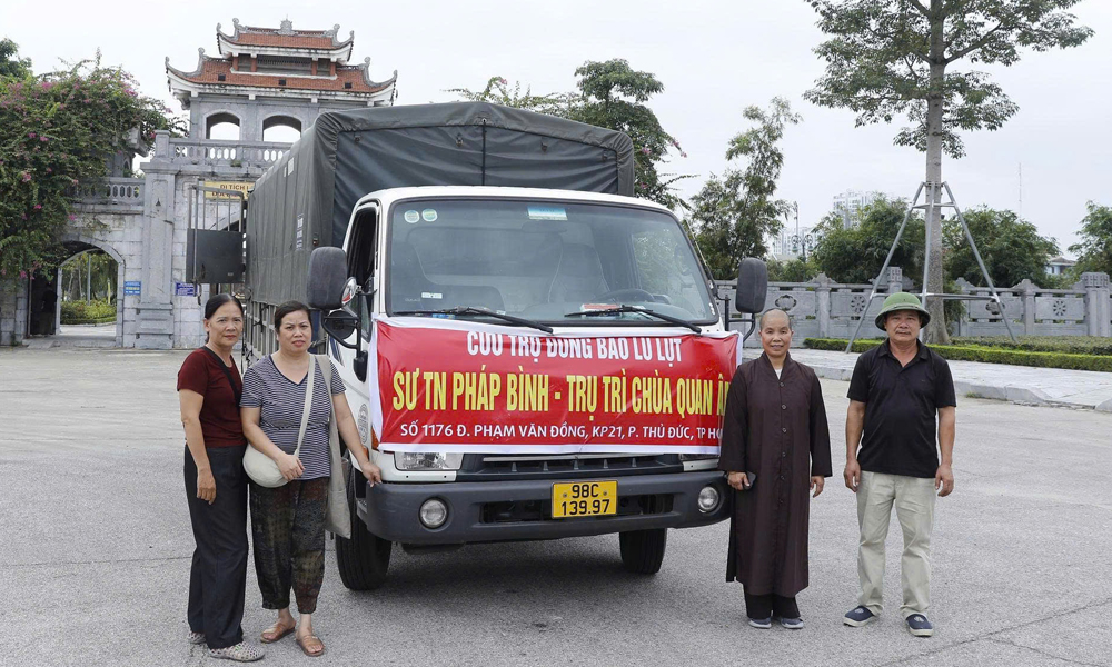 Xe vận chuyển hàng cứu trợ của chùa Quan Âm (Thành phố Hồ Chí Minh). |