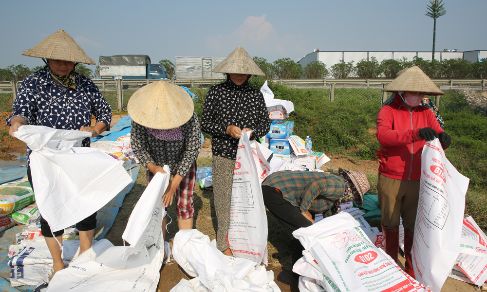 Nhân dân xã Tam Giang tham gia chống tràn đê hữu Cà Lồ. |