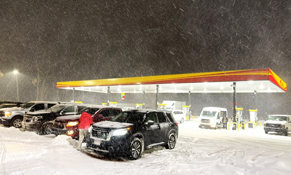 Tuyết phủ kín một trạm xăng tại bang Louisiana, trong đợt bão tuyết đầu tiên của mùa Đông. |