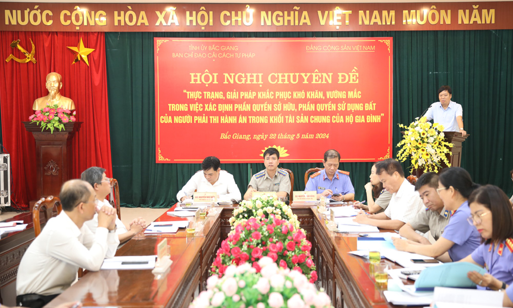 BẮC GIANG – Ngày 22/5, tại Cục Thi hành án (THA) dân sự tỉnh Bắc Giang, Ban Chỉ đạo cải cách tư pháp tỉnh tổ chức hội nghị chuyên đề về thực trạng, giải pháp khắc phục khó khăn, vướng mắc trong việc xác định phần quyền sở hữu, quyền sử dụng đất của người phải THA trong khối tài sản chung của hộ gia đình.