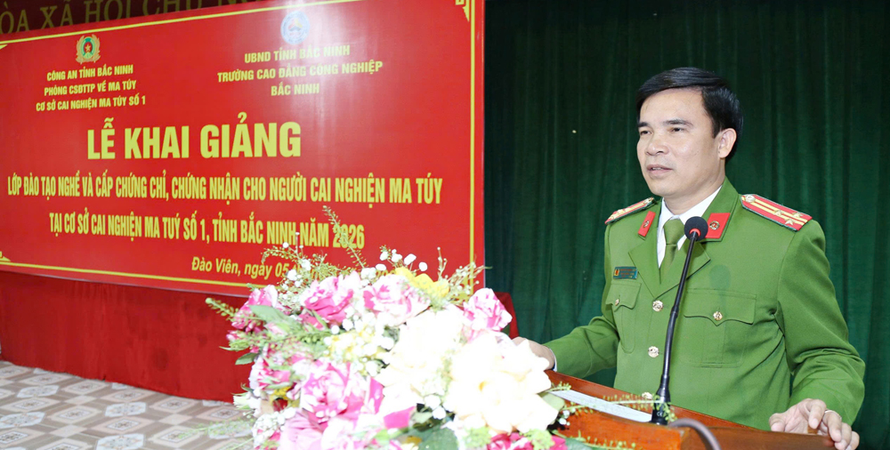 BẮC NINH - Ngày 5/3, Cơ sở cai nghiện ma túy số 1, thuộc Phòng Cảnh sát điều tra tội phạm về ma túy (Công an tỉnh Bắc Ninh) phối hợp với Trường Cao đẳng công nghiệp Bắc Ninh khai giảng lớp đào tạo nghề cấp chứng chỉ, chứng nhận cho 256 học viên đang cai nghiện tại cơ sở.