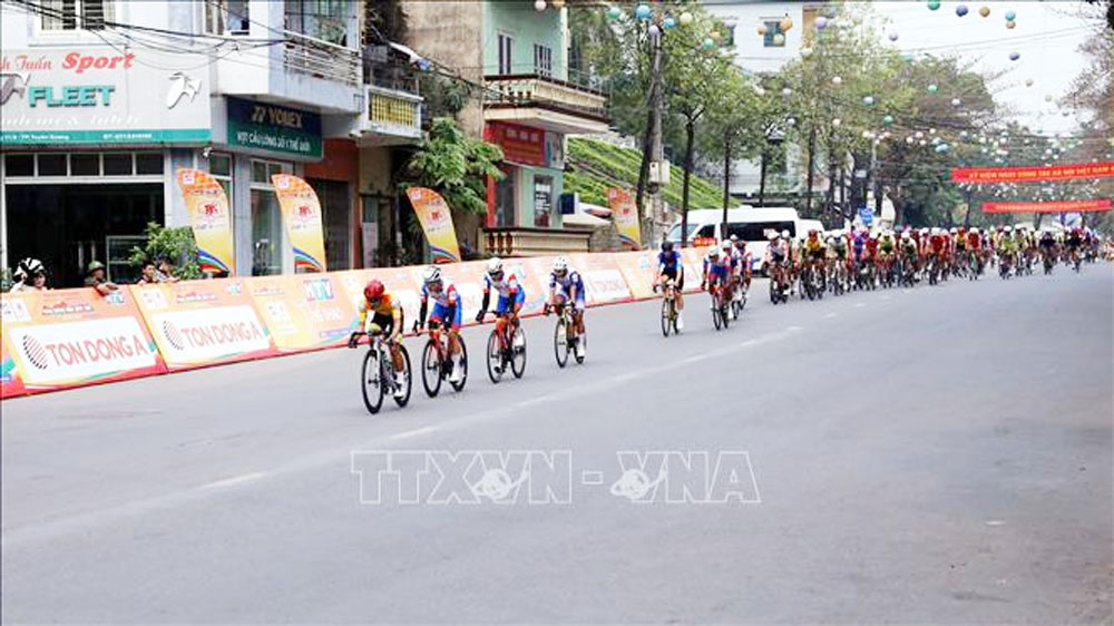 Các tay đua bước vào thi đấu chặng 1 tại thành phố Tuyên Quang. |