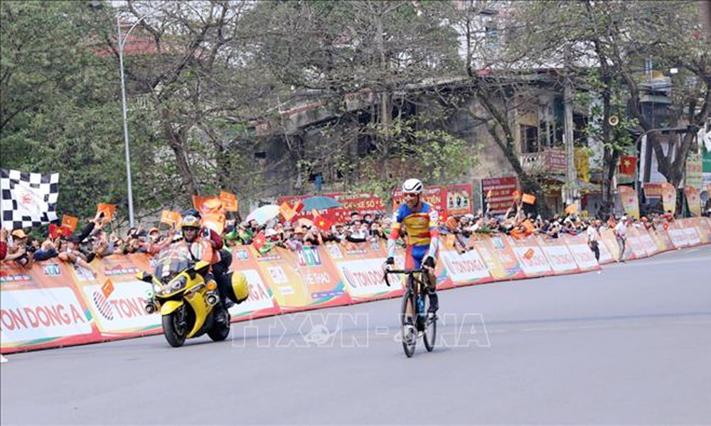 Tay đua Luic Desriac, đội Domesco Đồng Tháp, giành giải Nhất chặng đua đầu tiên. |
