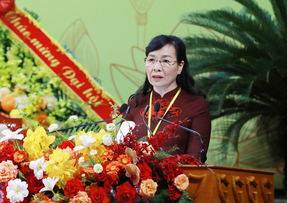 Đồng chí Nguyễn Thị Hà phát biểu khai mạc Đại hội. |