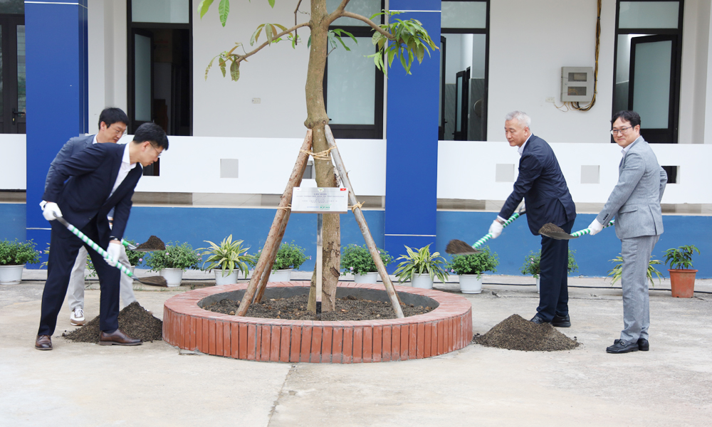 Sau Lễ khánh thành, các đại biểu đã tham gia hoạt động trồng cây lưu niệm trong khuôn viên trường.