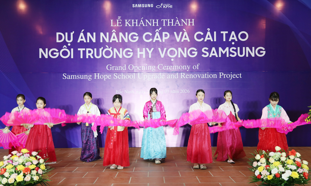 BẮC NINH - Ngày 26/3, tại xã Hiệp Hoà, Samsung Việt Nam phối hợp cùng tổ chức Korea Food for the Hungry International (KFHI) – Hàn Quốc tổ chức Lễ khánh thành dự án nâng cấp và cải tạo ngôi trường Hy vọng Samsung Bắc Giang (tỉnh Bắc Ninh) nhằm nâng cao chất lượng môi trường học tập cho học sinh và thể hiện trách nhiệm xã hội của doanh nghiệp đối với cộng đồng.
