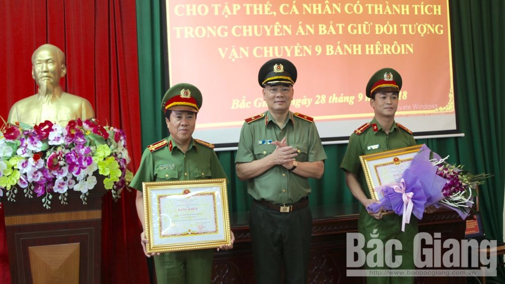 Khen thưởng Công an TP Bắc Giang bắt giữ đối tượng vận chuyển 9 bánh heroin
