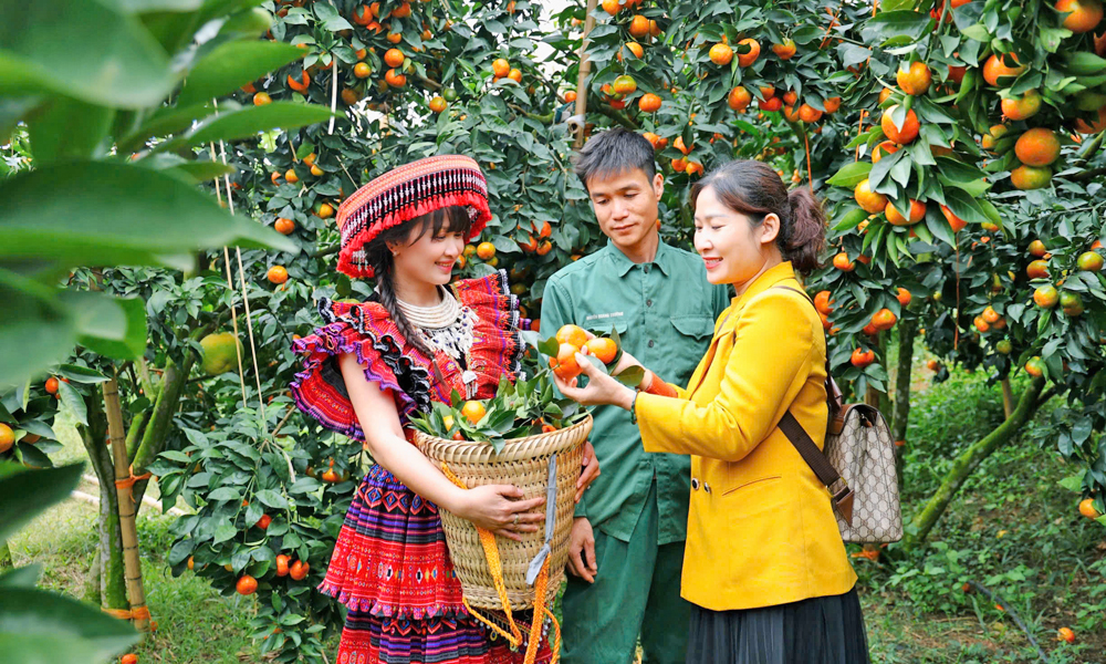 Nông dân các nhà vườn đón du khách đến thăm quan, cùng chia sẻ niềm vui thu hoạch trái ngọt |