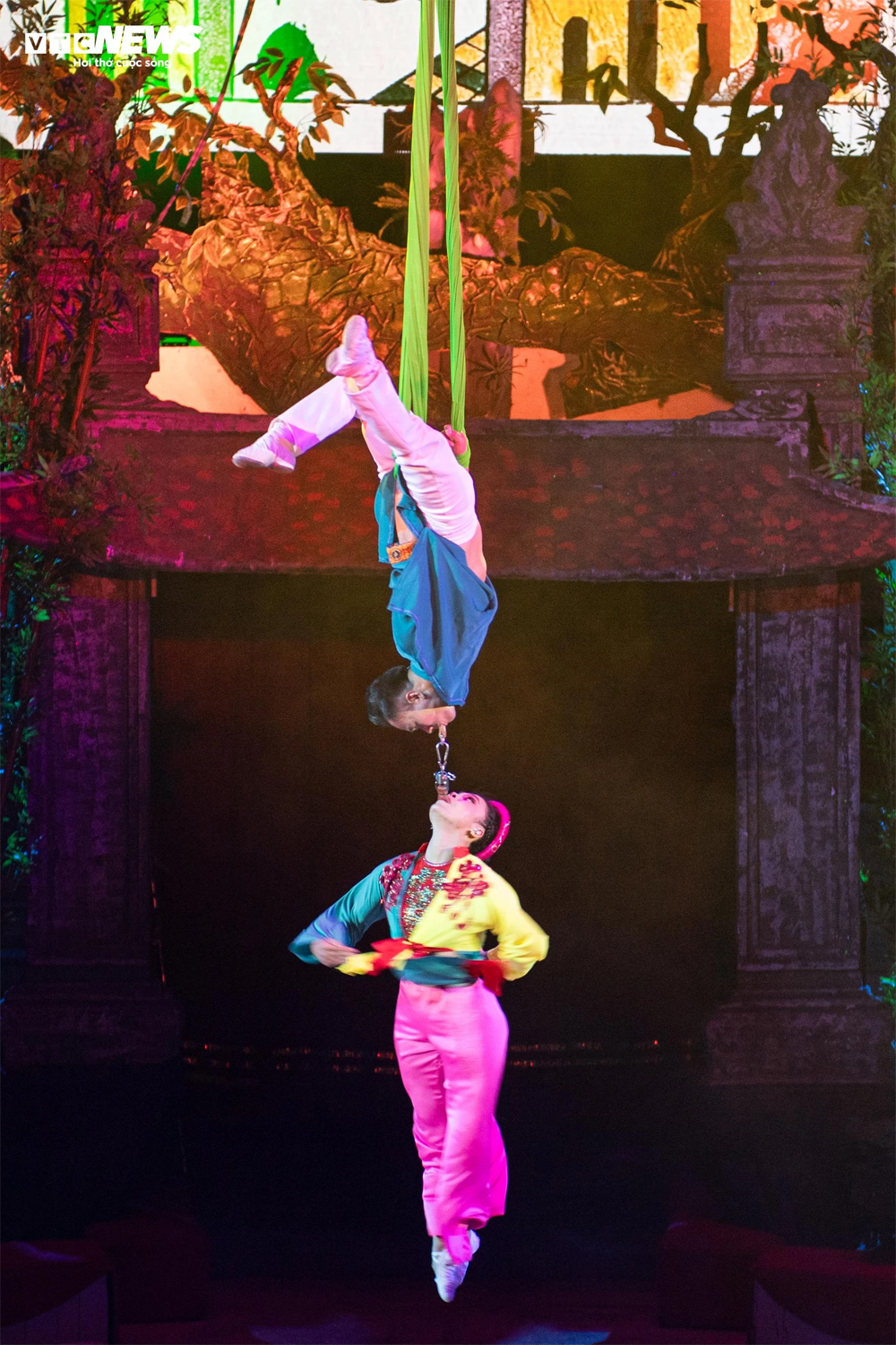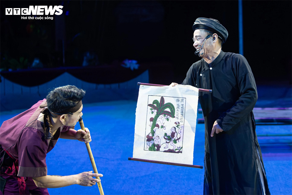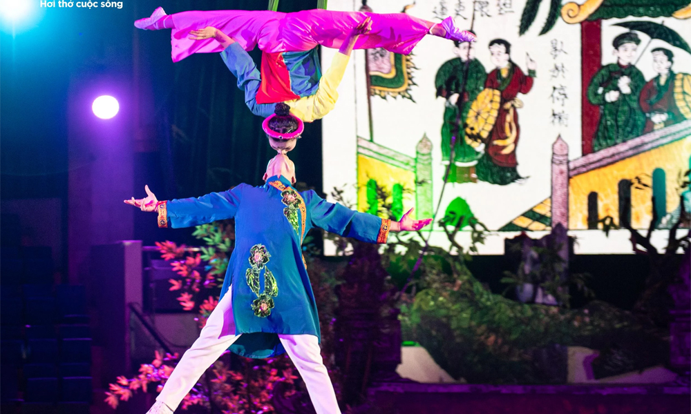 Điểm nhấn của chương trình là vở diễn sân khấu hóa “Chuyện nhà Tí”, nơi các bức tranh Đông Hồ kinh điển được tái hiện bằng ngôn ngữ xiếc giàu tính biểu đạt. Những kỹ thuật nhào lộn, thăng bằng, tung hứng được lồng ghép khéo léo, giúp nhân cách hóa các nhân vật dân gian, biến sân khấu thành không gian nghệ thuật sống động, nơi giá trị truyền thống và cảm quan thẩm mỹ hiện đại giao thoa một cách tự nhiên.