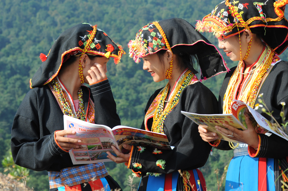 Những cô gái dân tộc Dao bản Mậu. Ảnh: Thế Dũng. |