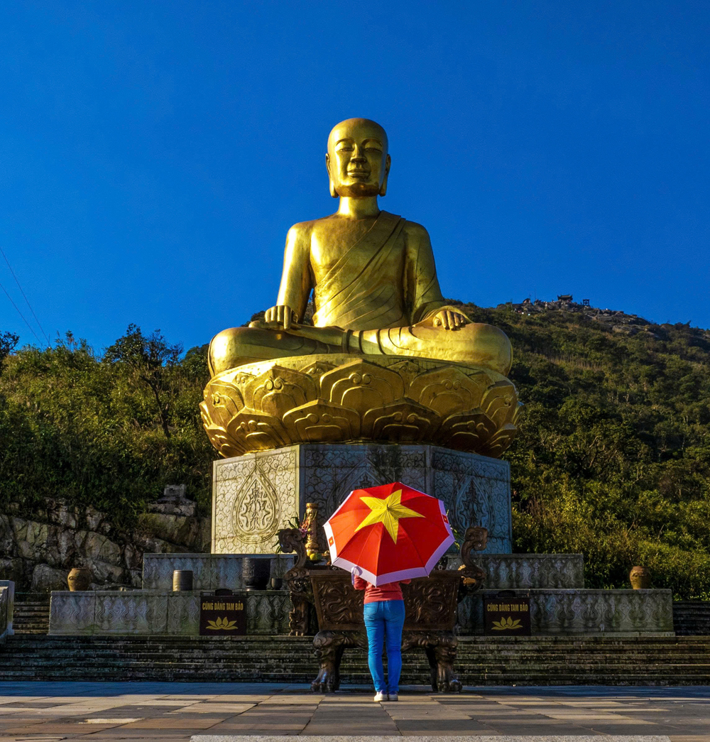 Tượng đài Phật Hoàng Trần Nhân Tông trên đỉnh Yên Tử. Ảnh: Nguyễn Đức Nghĩa. |