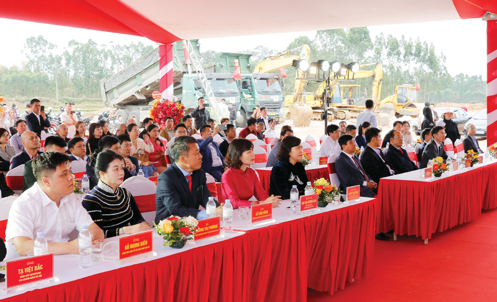 Ngay sau phần phát biểu, trong không khí phấn khởi và trang trọng, các đồng chí lãnh đạo tỉnh, đại diện chủ đầu tư và đại biểu đã thực hiện nghi thức khởi công dự án.