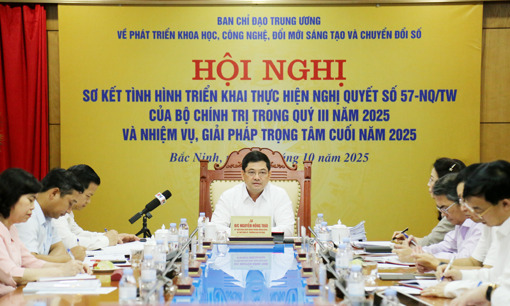 Trong quý III/2025, công tác lãnh đạo, chỉ đạo, tổ chức triển khai Nghị quyết số 57-NQ/TW tiếp tục được thực hiện khẩn trương, quyết liệt và đồng bộ trong toàn hệ thống chính trị; định hình rõ quan điểm chuyển đổi mô hình phát triển đất nước, trọng tâm là xác lập mô hình tăng trưởng mới dựa trên khoa học, công nghệ, đổi mới sáng tạo và chuyển đổi số quốc gia.