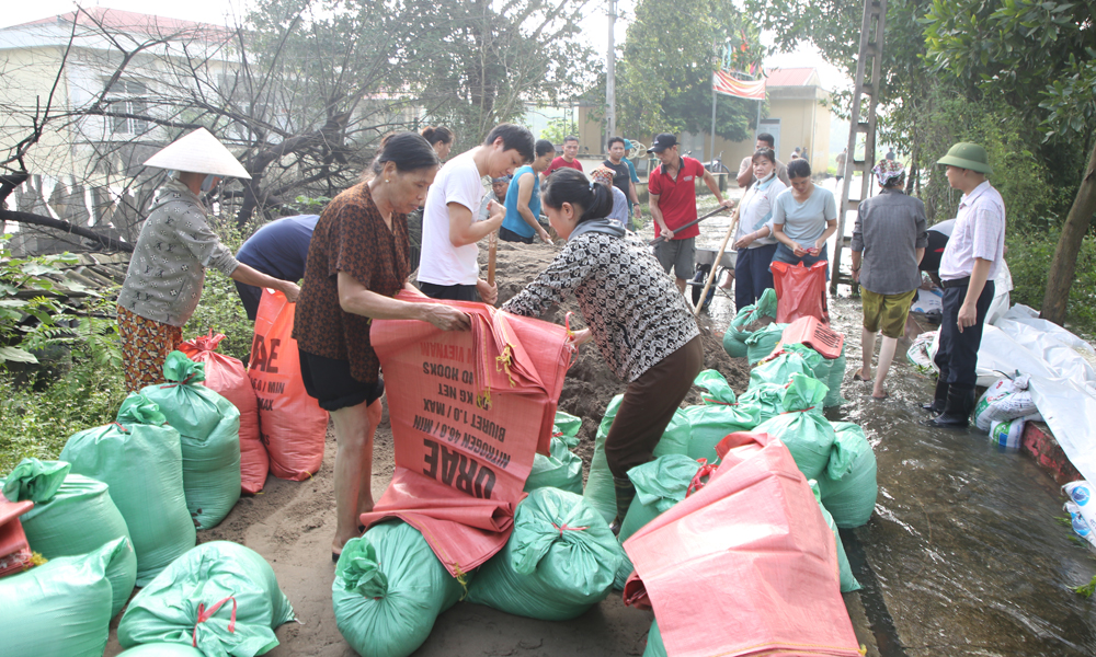 Từ 15 giờ ngày 1/10 đến 11 giờ ngày 2/10, các lực lượng tham gia đắp đê bối đã sử dụng gần 1.000 bao tải cát, bạt chống sóng đắp tôn cao mặt đê từ 50 -70 m với tổng chiều dài khoảng 200 m tại các vị trí bị tràn, giúp hộ dân di chuyển nhiều tài sản, sơ tán 30 người đến khu vực nhà văn hoá, trường học để bảo đảm an toàn.