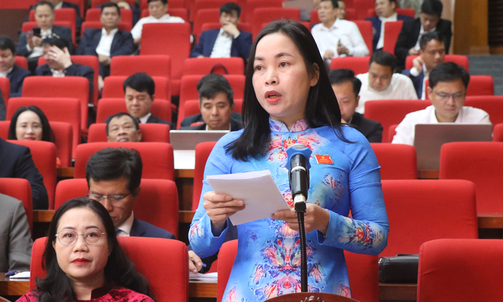 Đại biểu Vũ Thị Phương Thảo, Phó Giám đốc Sở Tài chính, Tổ đại biểu HĐND tỉnh số 1 phát biểu. |