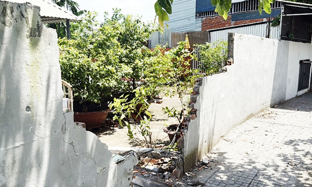 Tường rào nhà dân bị sập trong vụ tai nạn sáng ngày 4/6. |