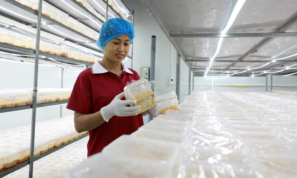 Chị Lư Thị Qúy kiểm tra sản phẩm. |