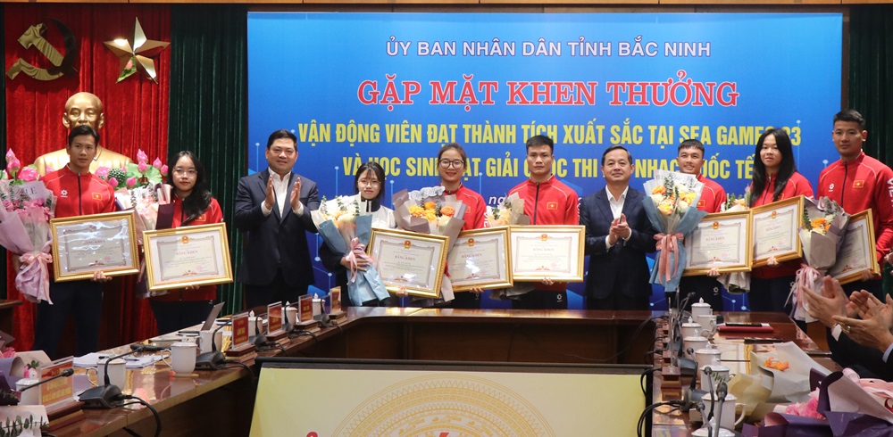 BẮC NINH - Ngày 31/12, UBND tỉnh tổ chức gặp mặt, khen thưởng các vận động viên đạt thành tích xuất sắc tại Đại hội Thể thao Đông Nam Á (SEA Games 33) và học sinh đạt giải tại Cuộc thi âm nhạc quốc tế.