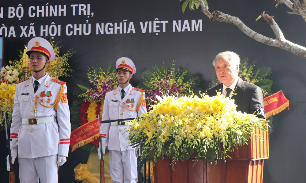Dự Lễ an táng có các đồng chí Ủy viên Bộ Chính trị: Chủ tịch Quốc hội Trần Thanh Mẫn; Ủy viên Bộ Chính trị, Bí thư Trung ương Đảng, Phó Thủ tướng Thường trực Chính phủ Nguyễn Hòa Bình; Ủy viên Bộ Chính trị, Bí thư Trung ương Đảng, Trưởng Ban Tuyên giáo và Dân vận Trung ương Nguyễn Trọng Nghĩa; nguyên Chủ tịch nước Nguyễn Xuân Phúc; cùng các đồng chí lãnh đạo Đảng, Nhà nước, nguyên lãnh đạo Đảng, Nhà nước, Mặt trận Tổ quốc Việt Nam, các bậc lão thành cách mạng, nhân sĩ, trí thức, đại diện các cơ quan, ban, ngành, tổ chức, đoàn thể, tôn giáo, các lực lượng vũ trang và đông đảo các tầng lớp nhân dân.