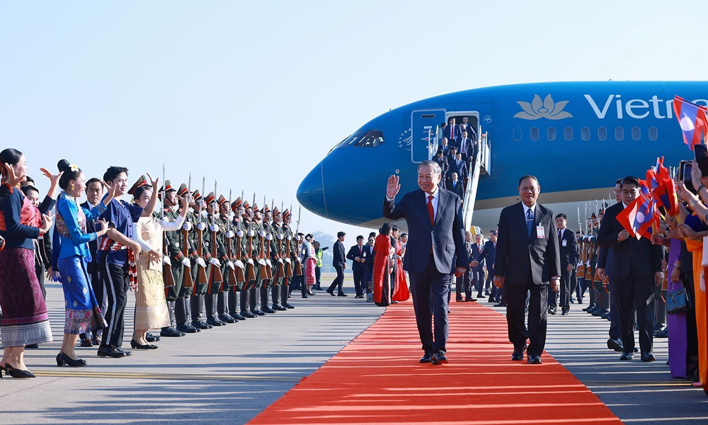 Lễ đón trọng thể Tổng Bí thư Tô Lâm tại thủ đô Vientiane của CHDCND Lào