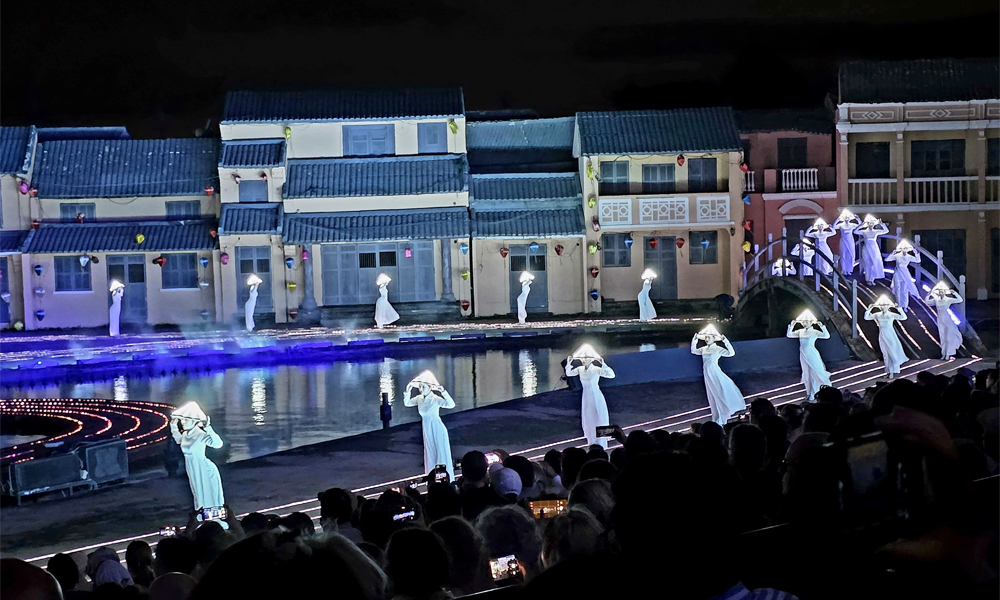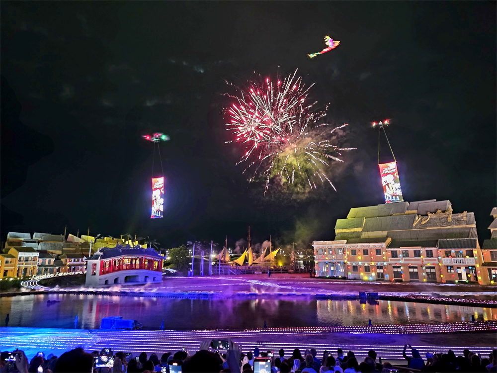Khoảnh khắc cao trào của đêm khai mạc là phần trình diễn hiệu ứng ánh sáng mô phỏng hình ảnh Rồng – Phượng “trao” những “cánh hoa may mắn” tỏa xuống từ không trung, tạo nên nghi thức chúc phúc độc đáo giữa bầu trời đêm Hội An.