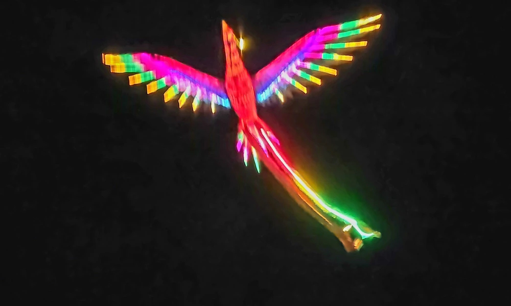 Chương trình là sự kết hợp giữa công nghệ hiện đại — thiết bị bay không người lái — và hệ thống đèn lồng nghệ thuật truyền thống, tạo nên không gian ánh sáng quy mô lớn. Hình ảnh Rồng – Phượng chuyển động trên nền trời đêm được dàn dựng như một nghi thức khai xuân, gửi gắm thông điệp về phú quý, thịnh vượng và hanh thông trong năm mới.