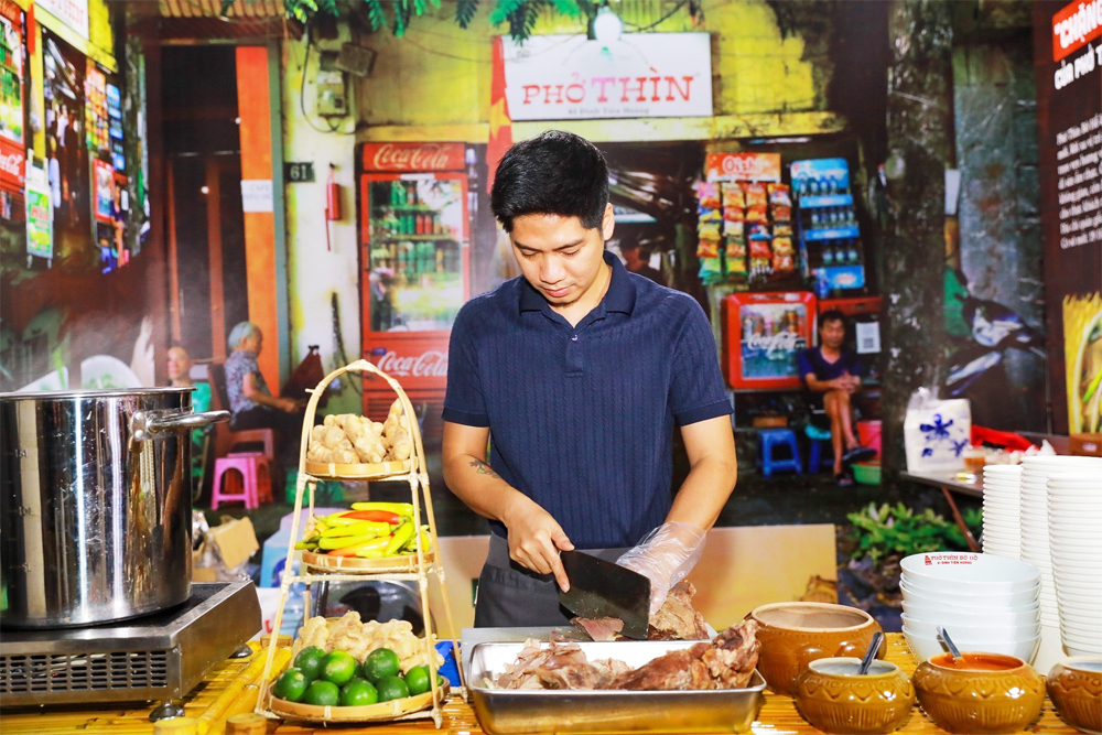Gian hàng ẩm thực giới thiệu phở Thìn Bờ hồ. (Ảnh: TTXVN) |