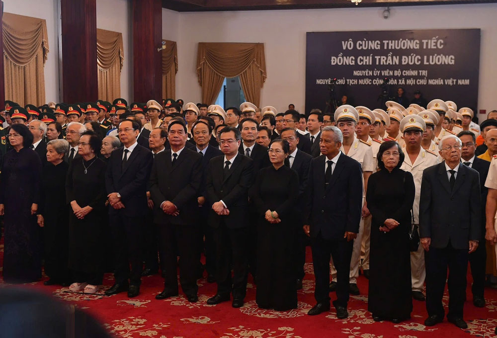 Đoàn Chủ tịch nước do đồng chí Lương Cường, Ủy viên Bộ Chính trị, Chủ tịch nước làm Trưởng đoàn vào viếng đồng chí Trần Đức Lương và chia buồn cùng gia quyến.