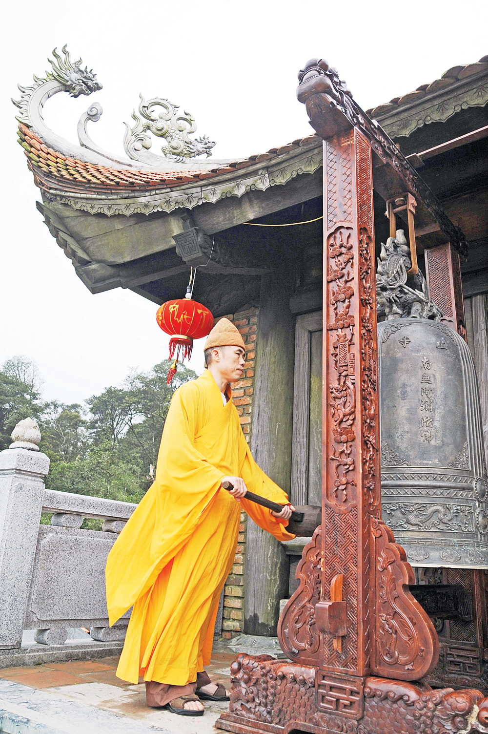 Tiếng chuông từ chùa Thượng như đánh thức núi rừng Yên Tử. |
