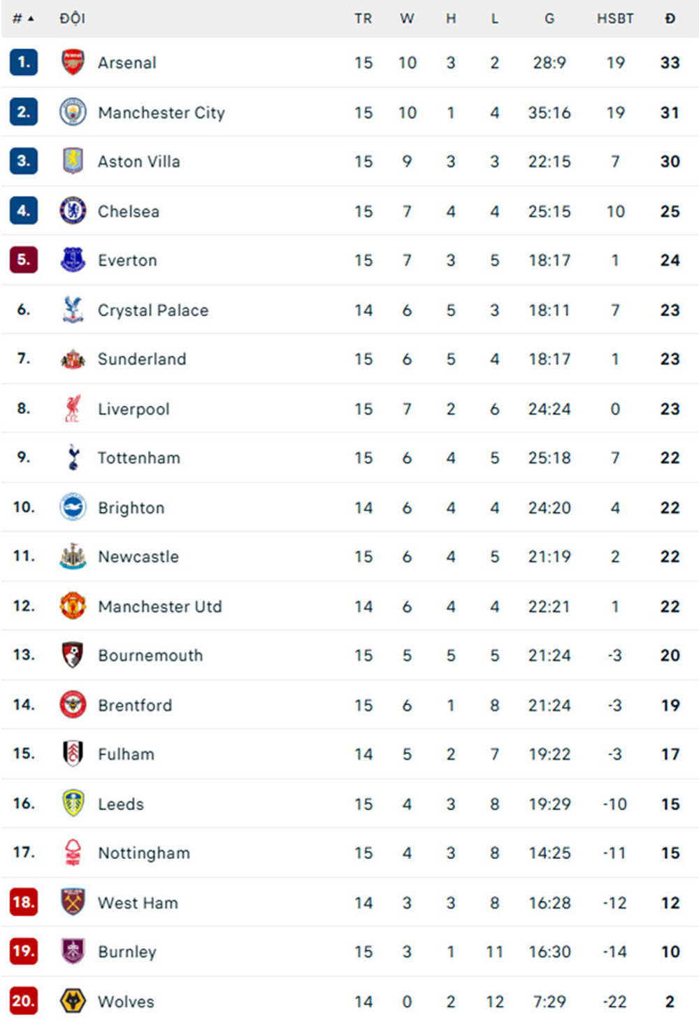 Bảng xếp hạng Ngoại hạng Anh |