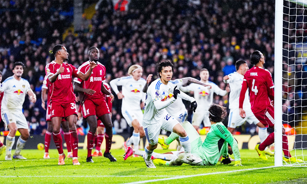 Nhưng Leeds không buông xuôi. Họ tràn lên trong những phút cuối và được bù giờ đến 9 phút. Đúng phút 90+6, từ một quả phạt góc, bóng chạm tay Gravenberch rồi bật đến vị trí của Ao Tanaka. Tiền vệ này tung cú vô-lê cận thành không ai theo kèm, ấn định trận hòa 3-3 trong sự vỡ òa của khán giả Elland Road.