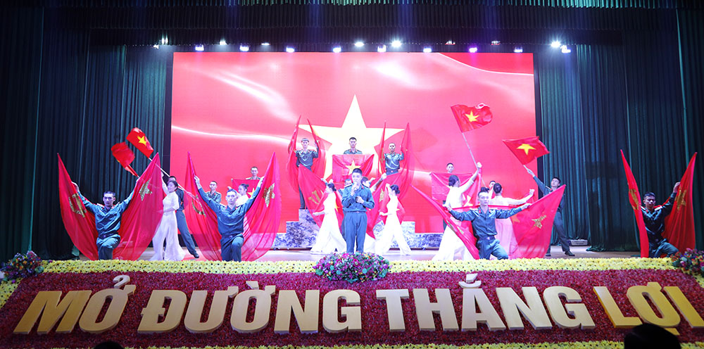 Tiết mục ca múa do đội văn nghệ xung kích Lữ đoàn biểu diễn tại Lễ kỷ niệm. |