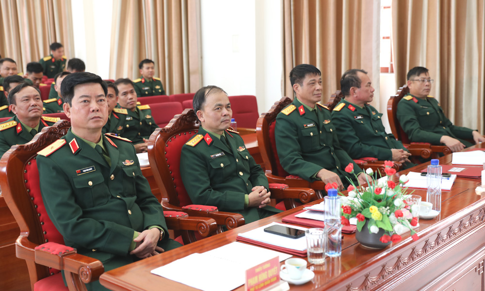 Thiếu tướng Phạm Hùng Quyết và các đại biểu dự hội nghị. |