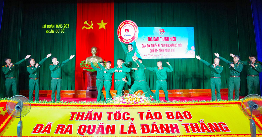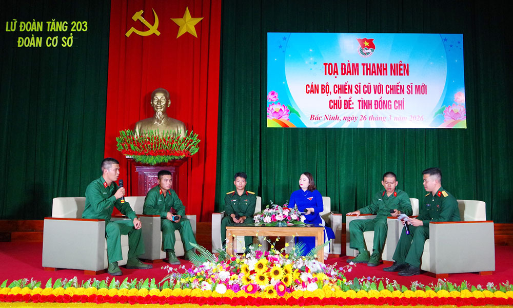 BẮC NINH - Nhân dịp kỷ niệm 95 năm Ngày thành lập Đoàn Thanh niên Cộng sản Hồ Chí Minh 26/3 (1931-2026), tối 26/3, Đoàn cơ sở Lữ đoàn Tăng 203 tổ chức chương trình tọa đàm cán bộ, chiến sĩ cũ với chiến sĩ mới với chủ đề “Tình đồng chí”.