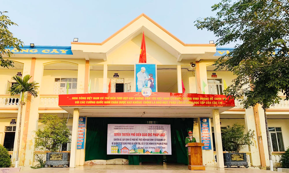 Một buổi tuyên truyền, giáo dục pháp luật cho học sinh của Trường Trung học cơ sở thị trấn Đồi Ngô số 1. Ảnh minh họa. |