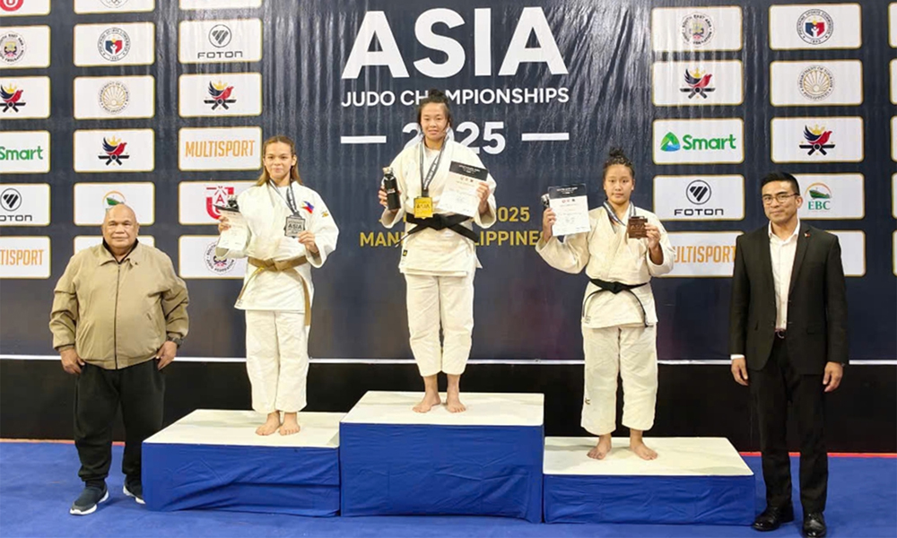 Võ sĩ Lương Như Quỳnh (đứng giữa) trên bục nhận Huy chương Vàng tại Giải Vô địch Judo trẻ và Vô địch Đông Nam Á năm 2025. |