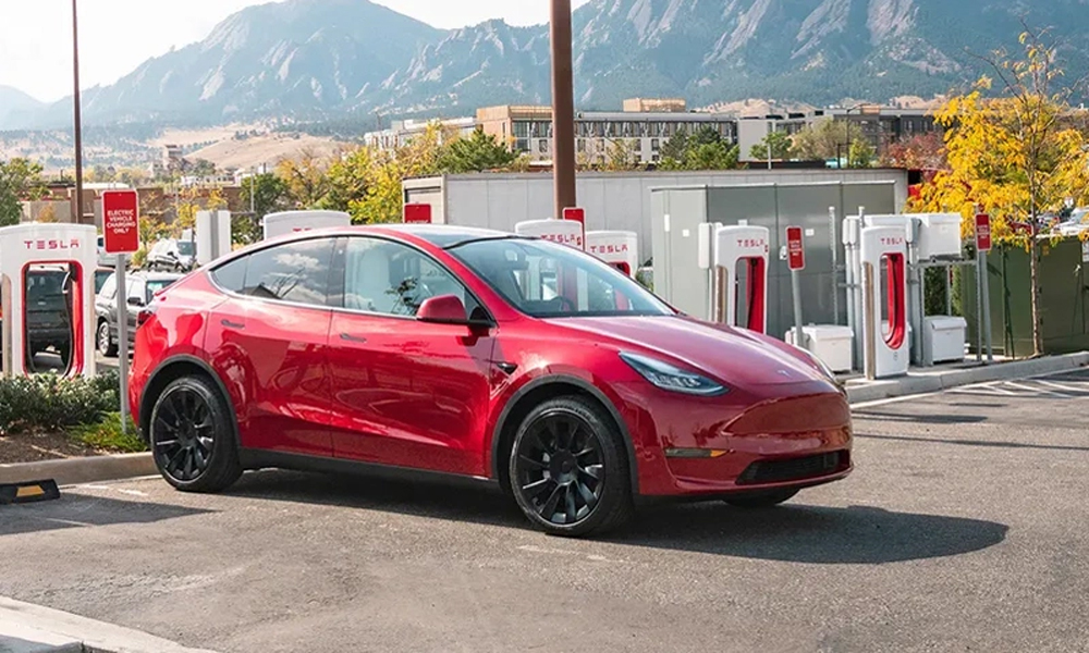 Xe điện Tesla tại trạm sạc Supercharging. |