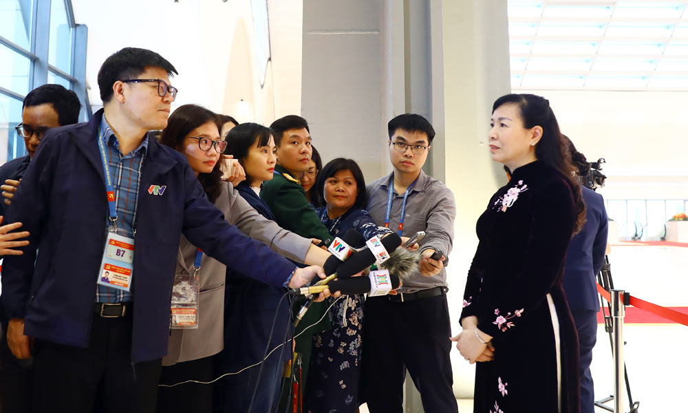 Đồng chí Nguyễn Thị Hà, Ủy viên Ban Thường vụ Tỉnh ủy, Chủ tịch Ủy ban MTTQ tỉnh Bắc Ninh trả lời phỏng vấn báo chí. |