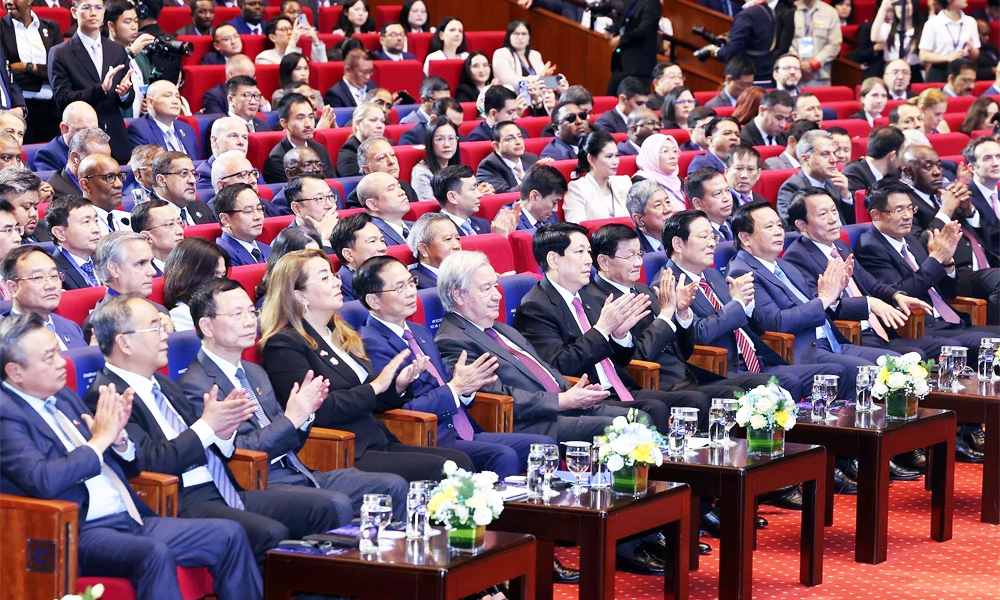 Chủ tịch nước Lương Cường và Tổng Thư ký Liên hợp quốc António Guterres cùng các đại biểu tham dự Lễ mở ký Công ước Hà Nội.