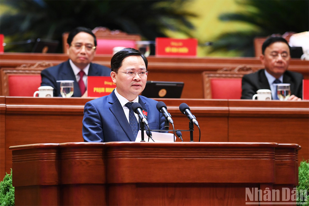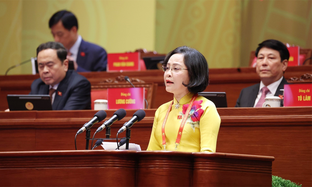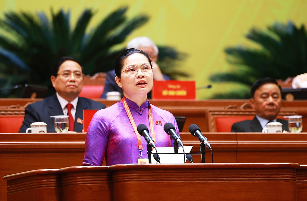Đồng chí Hà Thị Nga, Ủy viên Trung ương Đảng, Phó Bí thư Thường trực Đảng ủy Mặt trận Tổ quốc, các đoàn thể Trung ương, Phó Chủ tịch, Tổng Thư ký Ủy ban Trung ương Mặt trận Tổ quốc Việt Nam, tham luận về vấn đề "Phát huy sức mạnh đoàn kết toàn dân tộc - nền tảng, động lực quan trọng thực hiện thắng lợi các mục tiêu phát triển đất nước trong kỷ nguyên mới". |