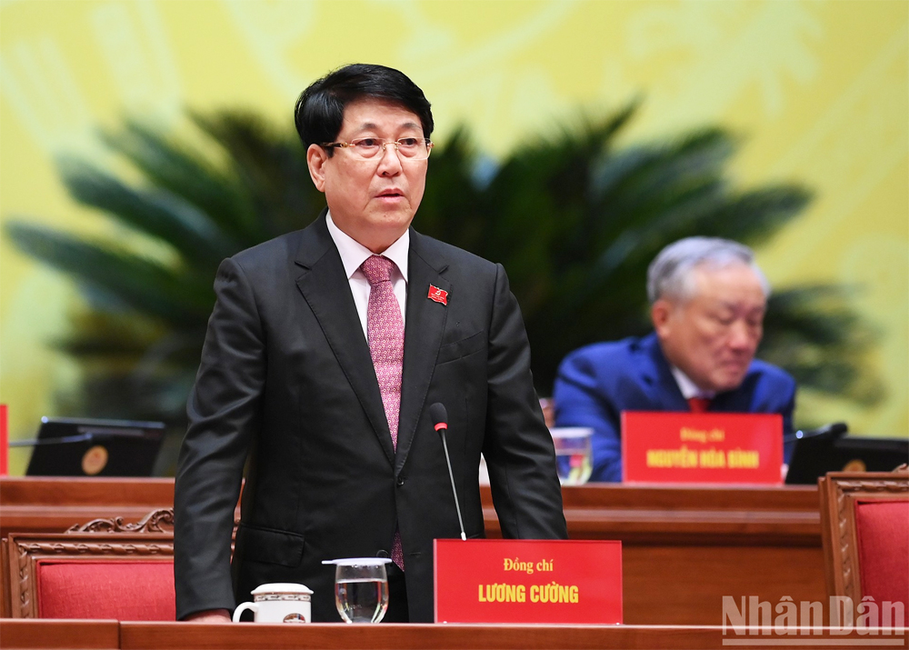 Chủ tịch nước Lương Cường điều hành phiên thảo luận. |