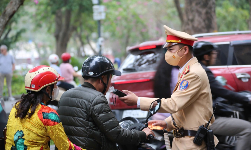 Cụ thể, lúc 10h25, cảnh sát phát hiện anh B.Q.V. (SN 1978, ở Hà Nội) điều khiển xe máy vi phạm ở mức 0,224mg/lít khí thở. Đến 10h40, CSGT tiếp tục phát hiện anh N.V.N. (SN 1976, ở Hà Nội) điều khiển xe máy vi phạm ở mức 0,202mg/lít khí thở.