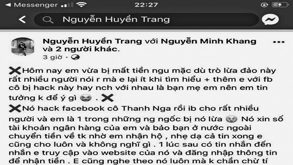 (BGĐT) - Thời gian gần đây, vì cả tin, một số người dân bị "sập bẫy" của đối tượng lừa đảo qua Facebook.