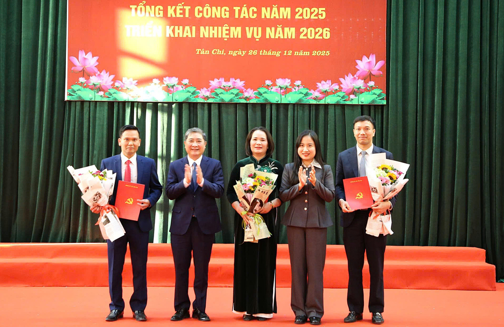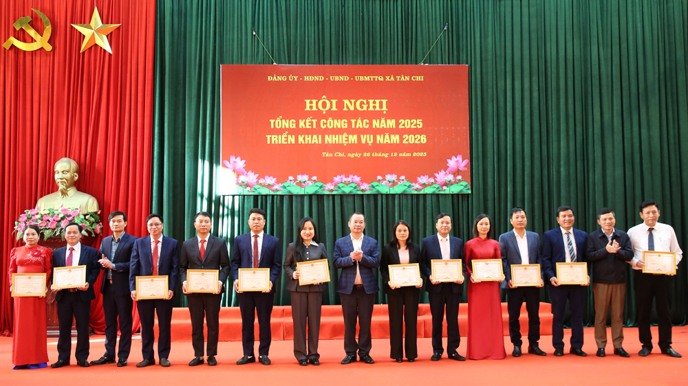 BẮC NINH - Chiều 26/12, xã Tân Chi (Bắc Ninh) tiến hành tổng kết công tác năm 2025, triển khai nhiệm vụ năm 2026. Dự hội nghị có đại diện lãnh đạo Ban Nội chính Tỉnh ủy, Văn phòng Tỉnh ủy, Sở Nội vụ.