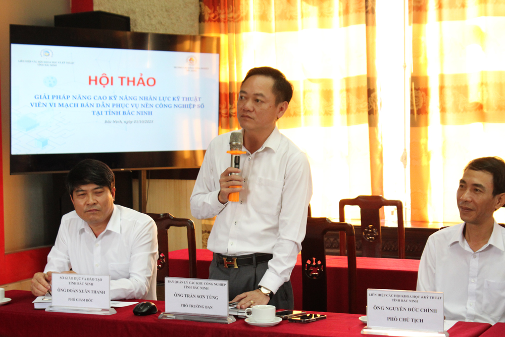 BẮC NINH - Chiều 1/10, Liên hiệp các Hội Khoa học và Kỹ thuật tỉnh phối hợp với Trường Cao đẳng Công nghiệp Bắc Ninh tổ chức hội thảo với chủ đề “Giải pháp nâng cao kỹ năng nhân lực kỹ thuật viên vi mạch bán dẫn phục vụ nền công nghiệp số tại tỉnh Bắc Ninh”.