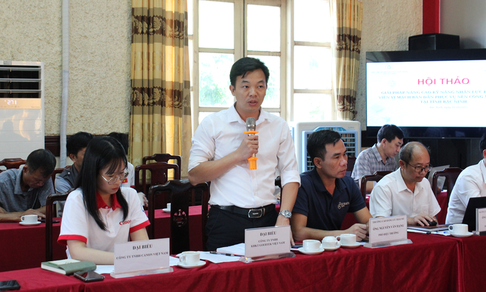 Cùng với các ý kiến trên, một số đại biểu tham luận về: Nâng cao kỹ năng cho học sinh, sinh viên các trường cao đẳng trên địa bàn thông qua các hoạt động sáng tạo; đổi mới chương trình đào tạo vi mạch bán dẫn theo chuẩn công nghiệp 4.0 để phục vụ nền công nghiệp số; xây dựng chuẩn đầu ra kỹ năng cho kỹ thuật viên vi mạch bán dẫn theo yêu cầu thực tế của doanh nghiệp; xây dựng chính sách và mô hình hợp tác đào tạo nhân lực giữa doanh nghiệp và nhà trường; áp dụng mô hình đào tạo kỹ thuật viên vi mạch bán dẫn 1+1+1, cách tiếp cận từ doanh nghiệp sản xuất; nâng cao số lượng và chất lượng các giải pháp tham gia cuộc thi, hội thi trong các trường nghề; đề xuất một số chính sách về giáo dục nghề nghiệp nhằm nâng cao kỹ năng nghề cho nguồn nhân lực kỹ thuật của tỉnh...